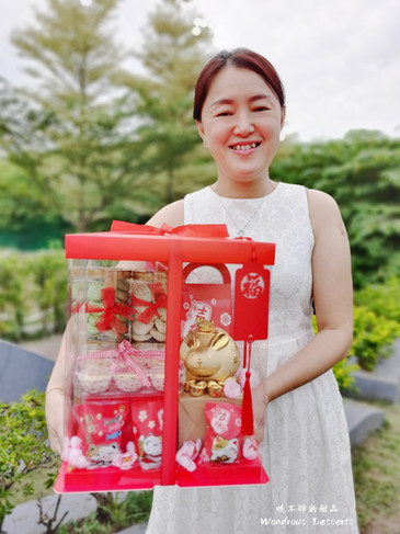 🍍 8 颗 ~ A1. 海盐焦糖坚果塔 🍍 8 颗 ~ A2. 雪Q酥 🍍 1 罐 ~ G1. 抹茶德国酥 🍍 1 罐 ~ G2. 蔓越莓德国酥 🍍 1 罐 ~ G4. 伯爵德国酥 🍍 1 罐 ~ G5. 坚果曲奇 🍍 1 罐 ~ G9. 旺旺兔曲奇 🧧 1 套 ~ 金蛇贺岁装饰